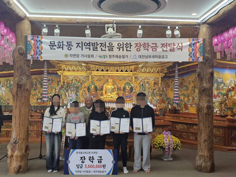 이번 장학금은 자연암의 자연장학회와 MG대전남부새마을금고 각 300만 원씩 마련해 조성한 것으로, 학생 1인당 30만 원씩 지원되어 학업에 실질적인 도움이 될 것으로 기대된다.