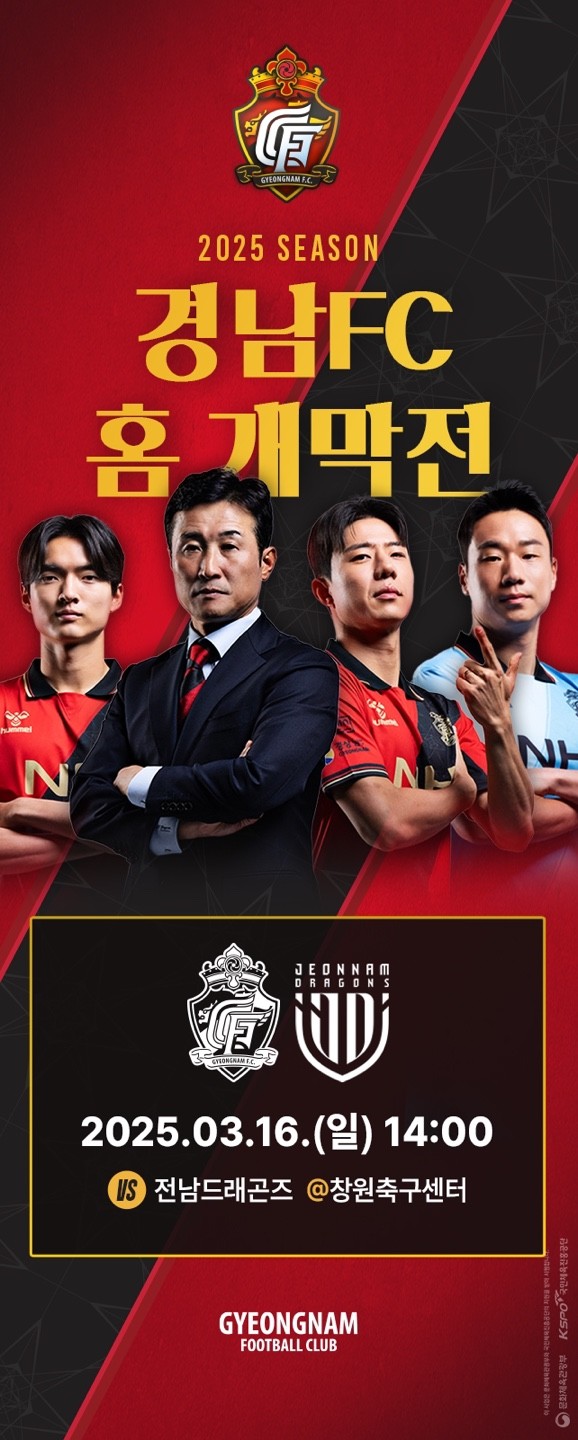 경남FC가 오는 3월 16일 오후 2시 창원축구센터에서 전남드래곤즈와의 2025시즌 K리그2 홈 개막전을 치른다.