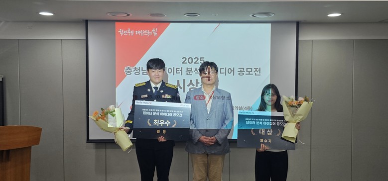 최우수상은 △황명 씨의 ‘기후요인 기반 화재 위험도 분석 및 예방 전략 제안’ △김민지 씨의 ‘골든타임 확보를 위한, 충남 119 출동 시간 데이터 기반 응급구조 거점 및 경로 안내 최적화’가 선정됐다.