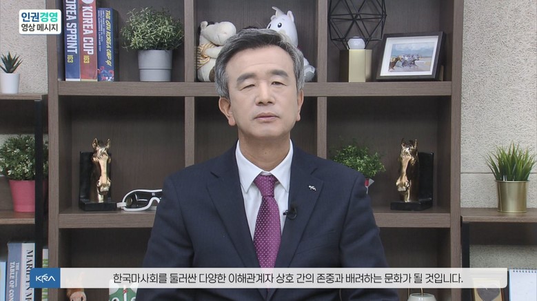 인권존중주간의 마지막 날이자, 세계인권의 날인 12월 10일에는 임직원 및 이해관계자를 대상으로 정기환 회장의 인권존중의지가 담긴 영상메세지가 전파됐다. 정기환 회장은 영상을 통해 “‘글로벌 TOP 5 말산업 선도기업’이라는 비전을 위해 사회적 책무를 다할 것”이라며 “이를 위한 원동력은 국민, 말산업 관계자 및 협력업체 등 한국마사회를 둘러싼 이해관계자간의 상호존중 및 배려하는 문화”라고 강조했다.