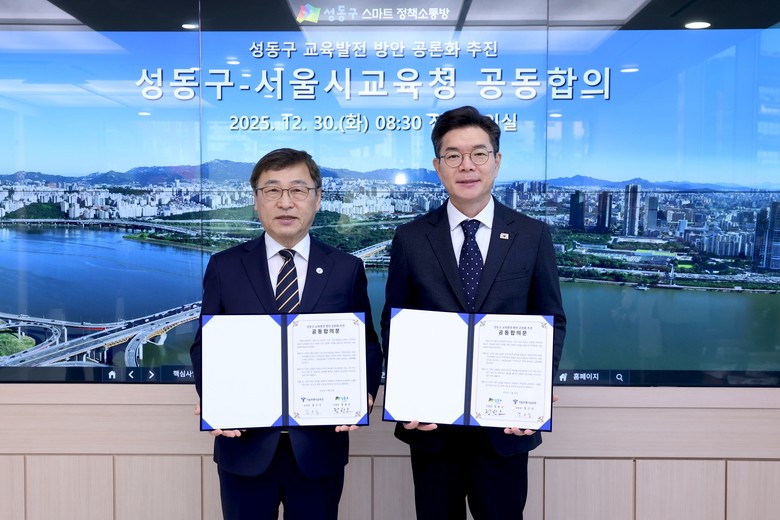 [성동구 세계타임즈=이장성 기자] 서울 성동구(구청장 정원오)가 서울특별시교육청과 함께 적정규모 학교 육성 등 성동구 교육 발전방안 공론화 추진을 위해 힘을 모은다고 밝혔다.
