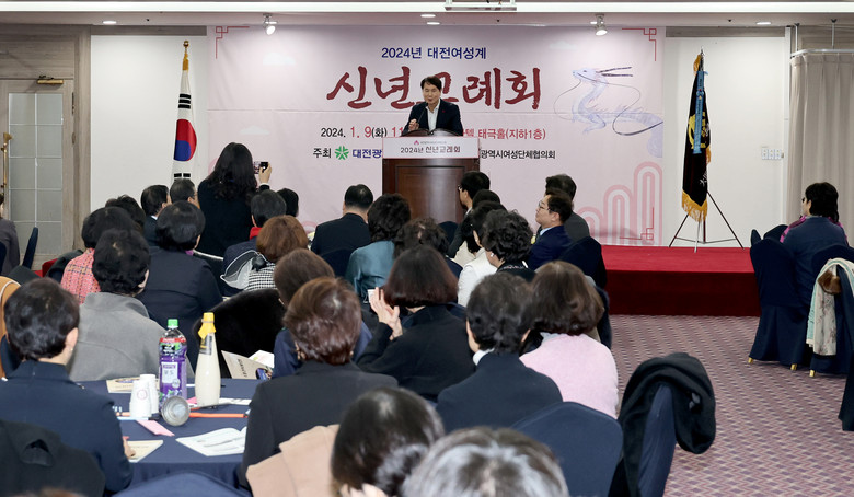 [대전 세계타임즈=이채봉 기자] 대전시의회 이상래 의장은 9일 계룡스파텔에서 개최된 ‘2024 대전여성계 신년교례회’에 참석해 대전여협 정영미 회장을 비롯한 관계자 및 내빈들과 새해 인사를 나눴다.