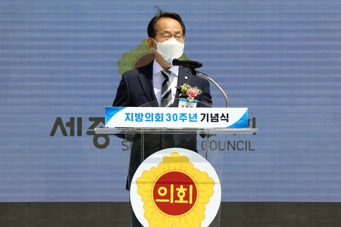 ▲ 세종시의회 이태환 의장이 지방의회 30주년 기념사를 하고 있다.