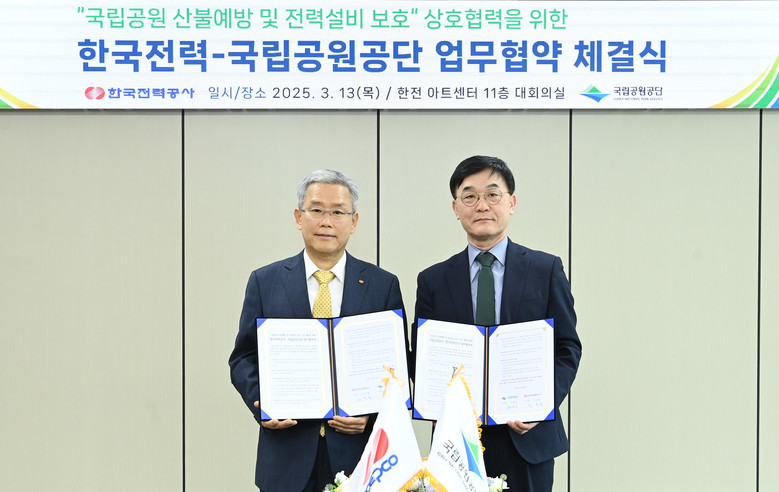 [세계타임즈 = 이영진 기자] 한국전력(사장 김동철, 이하 한전)은 국립공원공단(이사장 주대영)과 3.13(목) 한전 아트센터에서 국립공원 산불예방과 전력설비 보호를 위한 업무협약을 체결하였다.