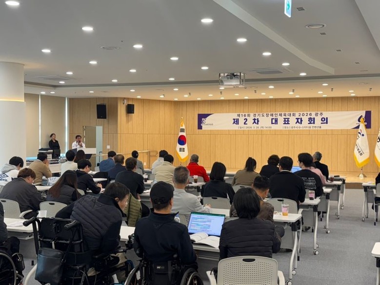 경기도장애인체육회는 26일 광주시 G-스타디움 컨벤션홀에서 제2차 대표자회의를 열고 대회 준비 상황과 운영 전반에 대한 사항을 공유했다. 이날 회의에는 개최지인 광주시를 비롯해 도내 31개 시·군 장애인체육회와 종목별 가맹단체 관계자 등 120여 명이 참석했다.