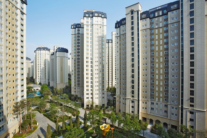 단지 디자인은 고급건축물 설계업체인 바세니안라고니사가 유럽풍 디자인을 적용해 외관은 물론 조경, 중앙광장, 조형물 평면 등에 이르기까지 프랑스 대저택을 기본 컨셉트로 지어졌다. 광장의 주축을 따라 흐르는 수로 잔디마당 수목 등은 유럽의 평야 강 산 등을 연상시키도록 배치됐다.