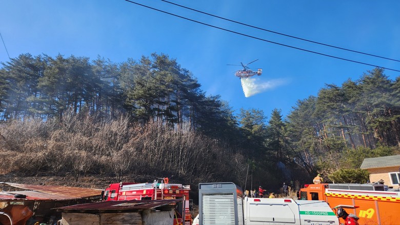 특히, 강풍주의보가 발효된 악조건 속에서도 도 임차헬기 1대, 산림청 헬기 1대, 소방헬기 1대가 투입되어 공중 진화작업을 지원하였다.