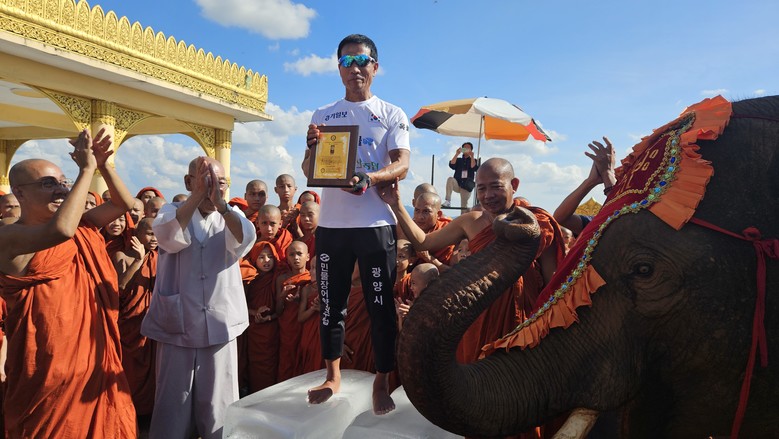 조승환 홍보대사는 지난 9월 양평에서 열린 ‘2025 한국친환경농업인 전국대회’에서 5시간 25분으로 자신의 기록을 5분 경신하며 신기록 행진을 이어왔으며, 이번 미얀마 고마다 사원에서 5시간 30분을 기록하며 다시 한번 세계를 놀라게 했다.