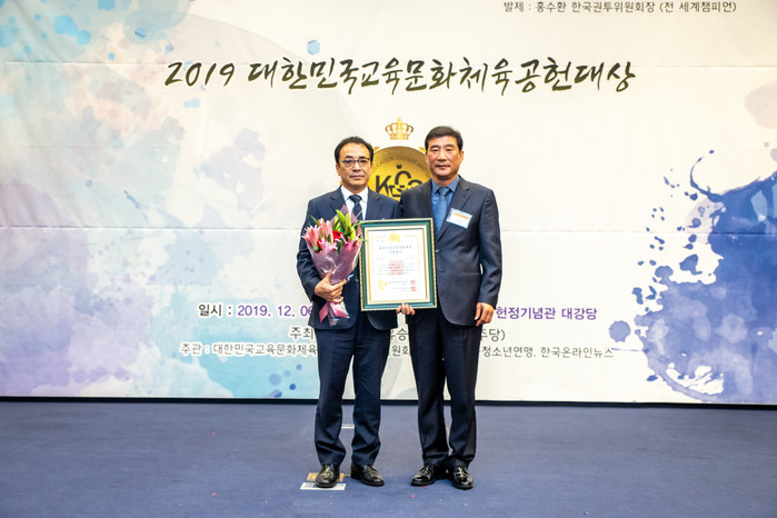 지난 6일 국회 헌정기념관에서 열린 ‘2019대한민국교육문화체육공헌대상’ 시상식에서 홍형표 교감은 대한민국교육문화체육공헌대상 교육분야 체육교육부문 대상을 수상했다.
