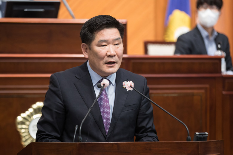 이어 한경봉 의원은 5분 발언을 통해 명분없는 수익사업으로 전락한 군산육상 태양광발전사업에 대한 해결을 촉구했다.