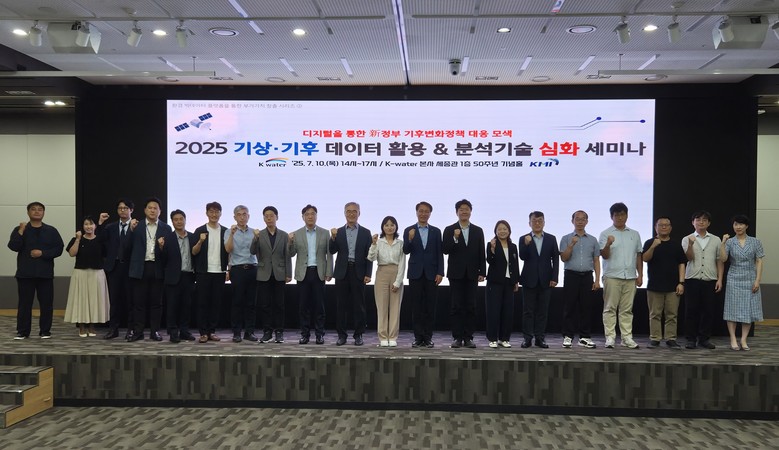 [세계타임즈 = 이영진 기자] 한국수자원공사(K-water, 사장 윤석대)는 7월 10일, 대전 본사에서 ‘2025 기상기후 데이터 활용 & 분석기술 심화 세미나’를 개최하고 기상 및 기후 데이터를 활용한 인공지능(AI) 분석기술과 디지털 물관리 사례를 공유했다.