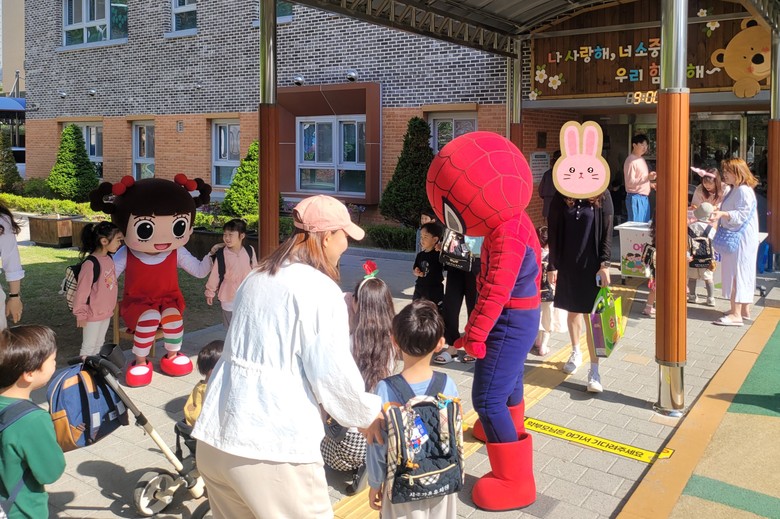 유아들은 캐릭터 인형들의 반가운 아침맞이 행사에 신나고 행복한 모습으로 참여하였고 놀이공원에서나 볼 수 있었던 캐릭터들을 만나 악수를 하거나 사진을 찍으며 즐거워하였다. 또한 학부모회에서 준비한 막대사탕 선물을 함께 제공하여 유아들의 큰 호응을 얻었다.