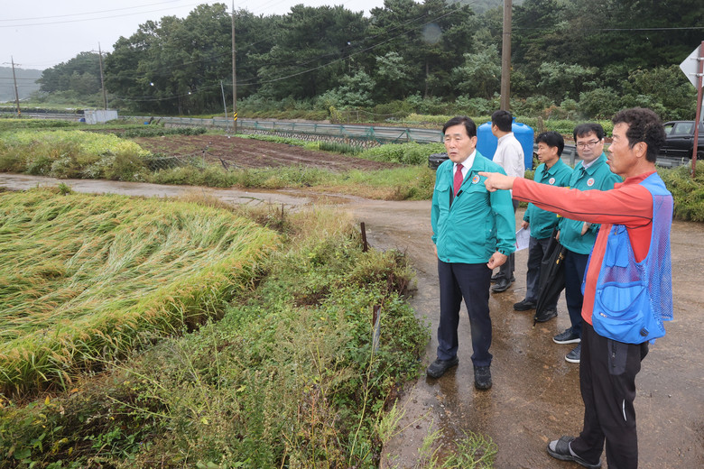 [옹진군 세계타임즈=심하린 기자] 옹진군수(문경복)는 지난 6일에 내린 집중호우와 강풍으로 인해 벼 도복 피해를 입은 북도·영흥면을 방문하여 피해 상황을 점검하였다.