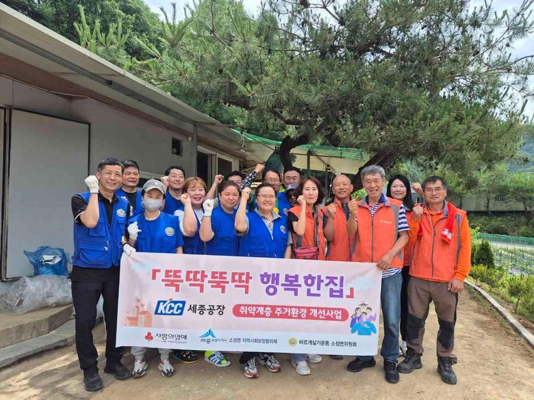[세종 세계타임즈=이채봉 기자] 세종특별자치시 소정면지역사회보장협의체(공동위원장 김광태·김한식)가 8일 케이씨씨(KCC)세종공장(공장장 윤석헌)과 함께 관내 주거취약가구를 대상으로 집수리를 지원하는 ‘뚝딱뚝딱 행복한집 사업’을 추진했다.
