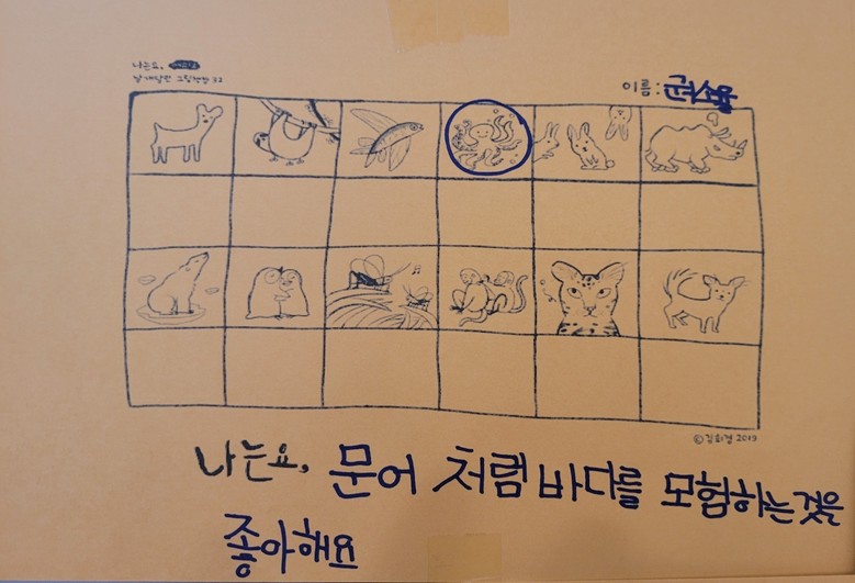 특히 이번 전시와 연계하여 ‘나의 성격과 닮은 동물을 찾아 써보기’활동에서는 학생들이 그림책 속 동물들을 살펴보며 자신의 성격을 돌아보고, 자신과 닮은 점이 있는 동물을 찾아 이유를 적는 시간을 가졌다. 활동에 참여한 학생들은 자기 이해와 감정 표현 능력을 기를 수 있는 의미 있는 경험을 했다.