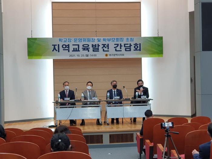 이날 간담회는 김규학 시의원과 김승수 국회의원, 이동욱 북구의회 의장 등 지역에 기반을 둔 정치권 인사와 김동호 대구시교육청 교육국장, 이철구 서부교육청 교육장 등 관계 공무원이 참석한 가운데 진행되었다.