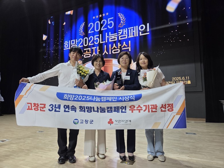 [세계타임즈=고창군 이영임 기자] 고창군이 전북사회복지공동모금회가 주관하는 ‘희망2025나눔캠페인’에서 3년 연속 우수시군으로 선정되어 표창패를 수상했다.