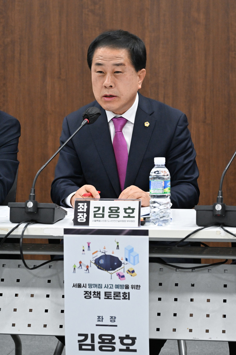 [서울 세계타임즈=이장성 기자] 서울특별시의회 도시안전건설위원회에서 부위원장으로 활동하고 있는 김용호 서울시의원(국민의힘, 용산1)은 4월 30일 서울시의회 제2대회의실에서 개최된 ‘서울시 땅꺼짐 사고 예방을 위한 정책 토론회’에 좌장으로 참여해 서울시의 땅꺼짐 사고 예방 방안 마련을 위한 심도 있는 논의를 이끌었다.