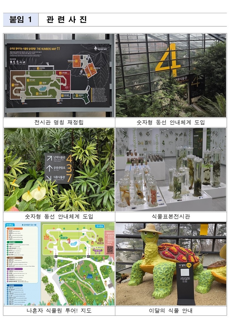 - 전시온실 관람 후 식물표본전시관까지 이어지는 통합 관람 코스 마련