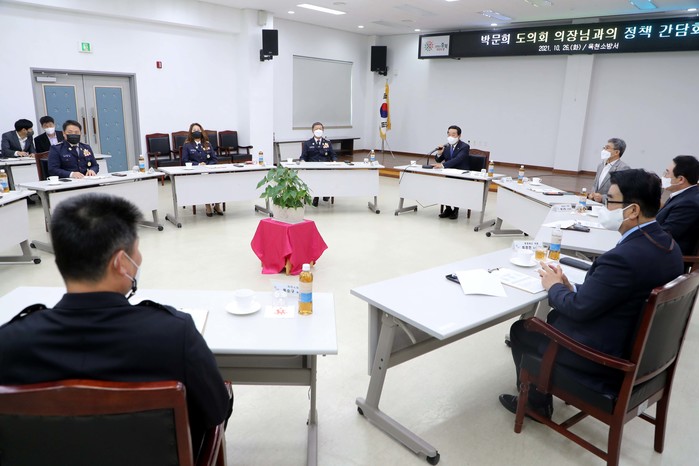 박문희 의장과 도의원은 옥천소방서를 찾아 소방공무원과 의용소방대의 헌신과 노고를 위로하고 애로사항을 청취했다.