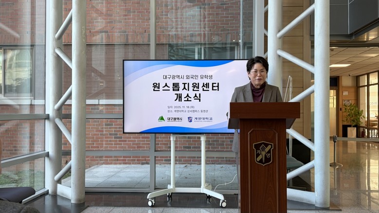 [세계타임즈=대구 한윤석 기자] 대구광역시는 11월 18일(화) 오후 2시 30분, 계명대학교 동영관에서 ‘대구광역시 외국인 유학생 원스톱지원센터’ 및 ‘거점 한국어센터’ 현판식을 가졌다.