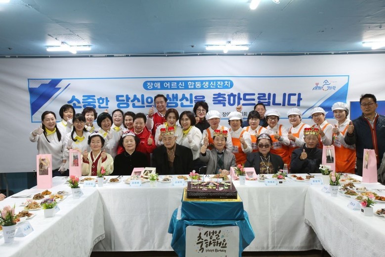 장애 어르신을 대상으로 경기도 부천 장애인복지회관에서 진행한 합동 생신 잔치는 봉사자들의 따뜻한 마음으로 어르신들에게 웃음과 감동을 선사했다. 총 63명의 봉사자가 참여해 어르신 97명에게 정성껏 마련한 생신상과 꽃단장 시간을 가지며 잊지 못할 추억을 선물했다.