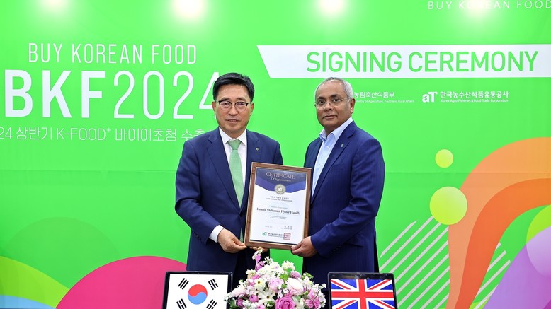 [세계타임즈 = 이현진 기자] 한국농수산식품유통공사(사장 김춘진)는 18일 서울 양재동 aT센터에서 카자흐스탄 최대 유통수입사 ‘신라인(SHIN-LINE GROUP)’ 신안드레이 회장과 영국 대형식품 바이어인 유니스낵(Unisnacks) 하이드 하니퍼 대표를 글로벌 저탄소 식생활 홍보대사로 위촉했다.