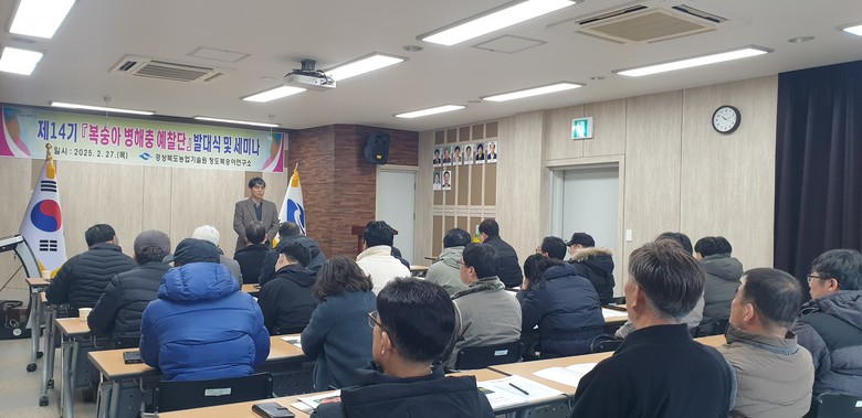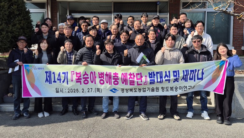 한편, 2월 27일에는 ‘2025년 복숭아 병해충 예찰단 발대식 및 세미나’를 열어 예찰 단원을 대상으로 병해충 예찰 활동의 중요성을 강조하고, 예찰 방법 및 운영 계획을 공유했다.