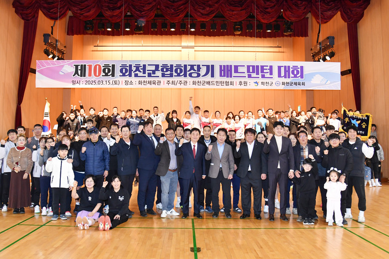 [화천군 세계타임즈=김민석 기자] 제10회 화천군 협회장기 배드민턴 대회가 지난 15일 화천체육관에서 최문순 군수, 류희상 군의장, 박대현 도의원, 송호관 군체육회장, 김동석 군배드민턴협회장을 비롯한 동호인들이 참석한 가운데 열렸다.