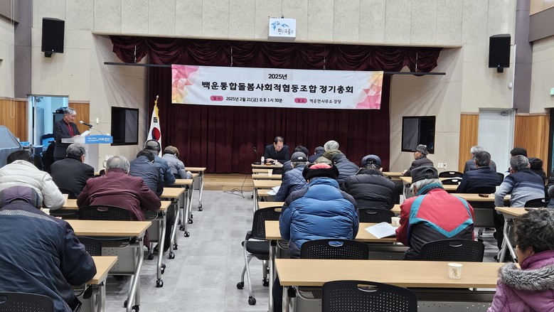 [진안 = 세계타임즈 김서주 기자] 진안군 백운 면 백운 통합 돌봄 사회적 협동조합(이사장 이남근, 이하 ‘협동조합’)는 지난 21일 백운 면 행정복지센터 강당에서 조합원들과 면민 등 100여 명이 참여한 가운데 2025년 정기총회를 개최했다.