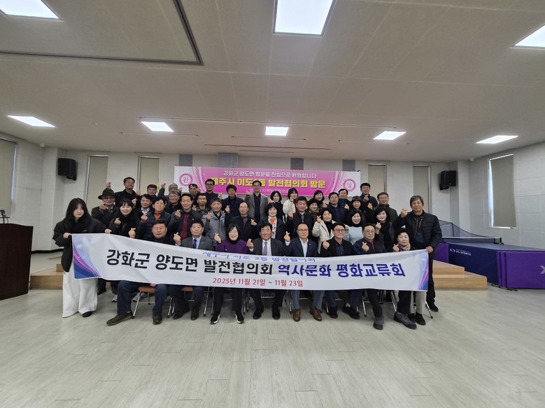 [강화군 세계타임즈=심하린 기자] 강화군 양도면 지역발전협의회(회장 이효순)은 지난 21일, 지역발전협의회 자매결연지인 제주시 이도2동 지역발전협의회(회장 고대경)가 양도면을 방문하여 양 지역 간 교류 활성화와 상호 협력 방안을 모색하는 뜻깊은 시간을 가졌다고 밝혔다.