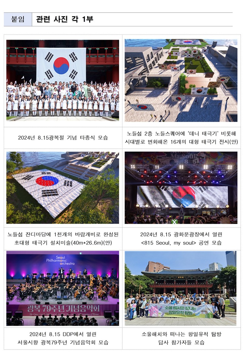 - 노들섬 ‘광복주간 선포식’(8.9.), 서울광장 양준모·민우혁 등 출연 대규모 뮤지컬 갈라 공연(8.16.)
