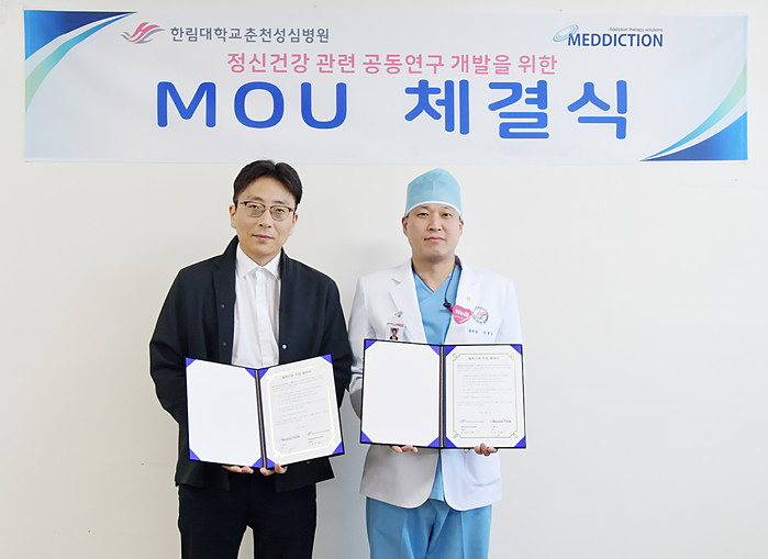 한림대학교춘천성심병원은 20일 중독 진단·치료 솔루션 개발기업인 메딕션과 ‘정신건강 관련 공동연구 및 개발’에 관한 업무협약을 체결했다.