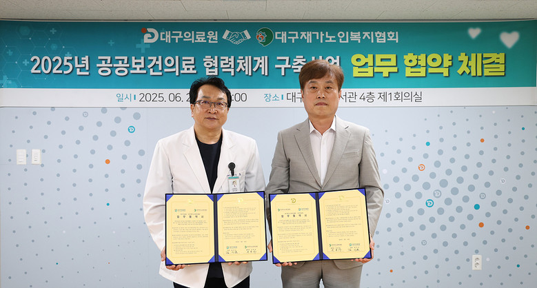 이어 김시오 대구의료원장은 “관내에 거주 중인 위기 취약 계층 어르신이 거주지에서 양질의 의료 서비스를 제공받을 수 있도록 경북대학교병원 의료진의 대구의료원 파견 확대와 뇌혈관센터 운영을 더욱 활성화하고, 향후 통합외래진료센터(2027년 완공 예정) 운영, 지역응급의료센터 격상 등 전반적인 진료 역량을 향상할 예정이다. 이와 함께 양 기관 간 협력체계 구축과 교류를 확대하여 사각지대 없이 필수 의료가 제공될 수 있도록 책임 의료기관의 역할을 다하겠다”고 말했다.