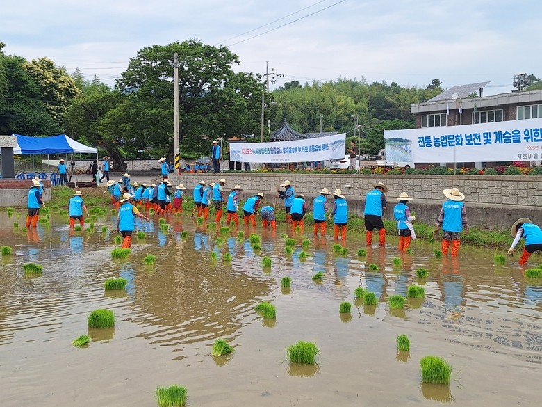 이번 행사는 공영민 군수를 비롯한 서호마을 주민 100여 명이 참여한 가운데, 전통 농경의례와 손 모내기 시연을 통해 우리 쌀의 소중함을 되새기고, 친환경 농업 실천에 대한 공감대를 형성하는 한편, 이웃 간 소통과 화합을 도모하는 뜻깊은 시간으로 진행됐다.