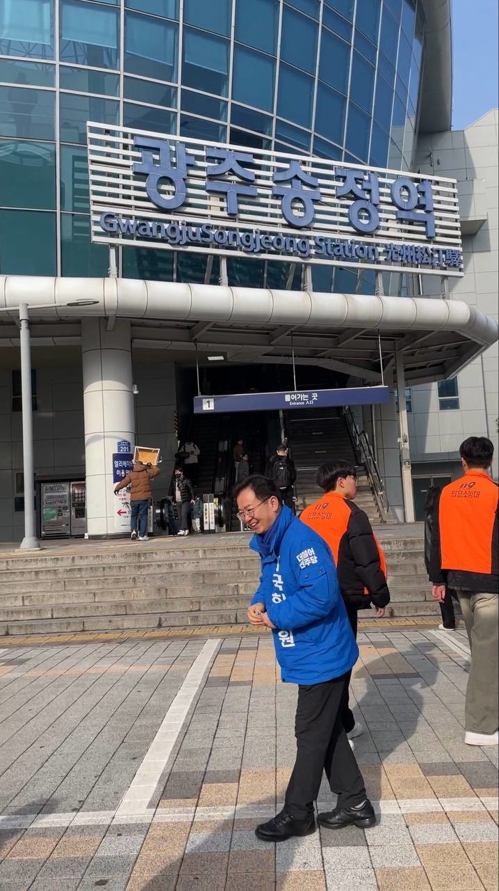 이날 오전 이 의원은 더불어민주당 광주광역시당과 함께 광주송정역을 찾아 고향에 내려온 귀성객들에게 설 인사를 드렸다 . 윤석열 대통령이 지난 7 일 KBS 대담에서 김건희 여사의 명품백 수수 논란을 두고 사과는커녕 ‘ 정치 공작 ’ 으로 매도하는 독선에 비판하며 ‘ 윤석열 퇴진 ’ 을 촉구했다 .