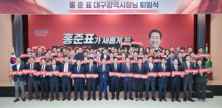 홍준표 대구광역시장은 “대구혁신 100+1 사업 중 70%를 완성하고, 나머지 과제들도 차질 없이 추진되고 있는 지금, 참 힘든 과정이었지만 ‘하면 된다’는 신념 하나로 달려온 시간이었다”며, “이 모든 여정에 함께해 주신 시민 여러분과 공직자 여러분께 진심으로 감사드린다”고 소회를 밝혔다.