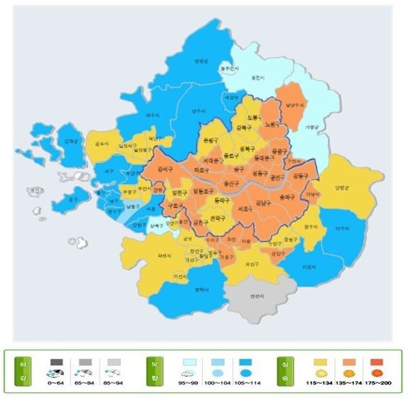 이 지수는 전국 152개 시·군·구 6680가구와 중개업소 2338곳에 대해 설문조사한 내용을 바탕으로 0~200의 점수로 나타내고 있다. 95 미만은 하강국면, 95 이상~115 미만은 보합국면, 115 이상은 상승 국면으로 분류한다.