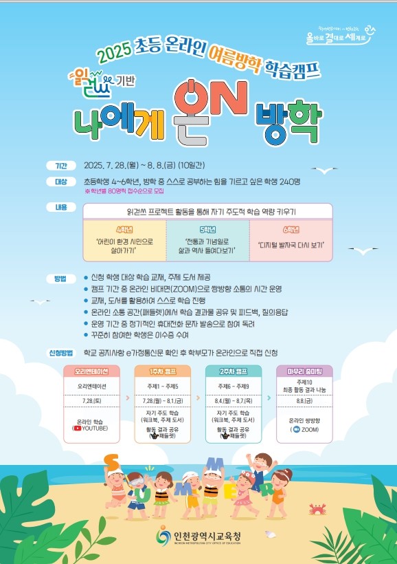 인천시교육청 관계자는 “아이들이 스스로 질문하고 관찰하며 사회적 의미를 찾아가는 배움의 과정에 중점을 뒀다”며 “방학이 성장의 기회가 되도록 적극 지원하겠다”고 밝혔다.