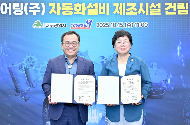 ▸ 전기차 부품 자동화설비 제조시설 건립… 2027년 1분기 가동 목표 [세계타임즈=대구 한윤석 기자] 대구광역시는 10월 15일(수) 대구시청 산격청사에서 영일엔지니어링㈜(대표 이창은)과 금호워터폴리스 내 ‘전기차 부품 자동화설비 제조시설’ 건립을 위한 투자협약을 체결했다.