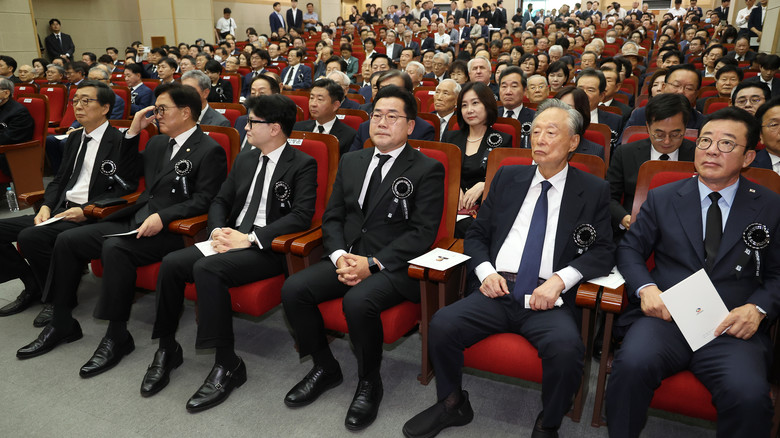 [세계타임즈 = 심귀영 기자] 여야 정치권은 국립서울현충원 현충관에서 열린 고(故) 김대중 전 대통령(DJ) 15주기 추도식에서 DJ 정신을 되새겼다.추도식에는 우원식 국회의장과 국민의힘 한동훈 대표, 더불어민주당 박찬대 원내대표 등 정치권 인사들이 대거 자리했다.김원기·임채정·문희상·정세균 전 국회의장과 이낙연·김부겸 전 국무총리, 강기정 광주광역시장, 김동연 경기지사, 김관영 전북지사, 홍철호 대통령실 정무수석 등도 참석했다.당 대표 경선에 출마한 이재명, 김두관 후보도 이날 치러지는 민주당 전당대회에 앞서 추도식에 들렀고, 노재헌·김현철·노건호 씨 등 전직 대통령 자제들도 모습을 드러냈다.윤석열 대통령과 문재인 전 대통령은 조화를 보냈다.참석자들은 김 전 대통령의 재임 시절 업적과 리더십을 한목소리로 기렸다.우 의장은 추도사에서 대통령은 독재에 맞서 싸울 때도, IMF 국난을 헤쳐 나갈 때도 언제나 국민을 믿고 국민을 섬기셨다며 대한민국과 한반도에 새로운 길을 연 담대한 리더십, 국민을 섬기는 리더십을 존경한다고 말했다.우 의장은 남북관계가 나날이 대결로 치닫고 한반도 평화가 흔들리는 지금, 대통령 같은 지도자가 계셨다는 것이 우리에게 얼마나 큰 축복이었는지 절감한다고 덧붙였다.국민의힘 한동훈 대표도 추도사에서 김 전 대통령은 2024년 어떤 정치인보다 지금에 맞는, 진영을 초월해 시대정신을 꿰뚫는 혜안을 보여줬다고 강조했다.한 대표는 상인적 현실 감각과 서생적 문제의식을 갖춰야 한다, 정치는 국민보다 반보 앞서야 한다' 등 김 전 대통령의 생전 발언을 상기하며 이 말씀들만 실천하면 지금보다 더 나은 대한민국을 만들 수 있을 것이라고 말했다.민주당 박찬대 원내대표는 대통령께서 굳건히 세운 대한민국이 총체적 위기에 뿌리부터 흔들리고 있다며 현 정권을 강하게 비판했다.박 원내대표는 오만과 독선의 윤석열 정권 2년 반 만에 민주주의는 무너졌고, 민생경제는 파탄 났다며 대통령께서 당부하신 민주주의의 완성, 민생경제의 회생, 한반도 평화 번영을 위해 사즉생의 각오로 투쟁하겠다고 밝혔다.참석자들은 추도식을 마치고 김 전 대통령 묘역으로 이동해 헌화하고 분향했다.
