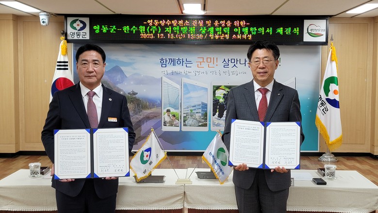 [세계타임즈 = 이영진 기자] 한국수력원자력(사장 황주호, 이하 한수원)이 15일 충북 영동군청에서 영동군과 ‘지역발전 상생협력 이행합의서’를 체결했다.