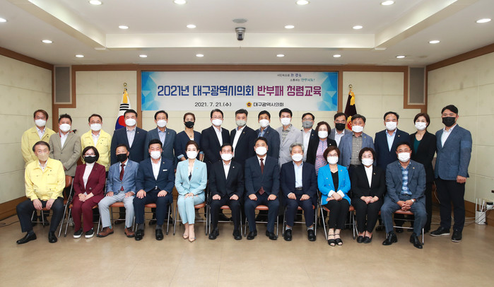 [대구=세계타임즈 한성국 기자] 대구광역시의회(의장 장상수)는 7월 21일(수) 오후 1시 30분 시의회 3층 회의실에서 전체 시의원 30명을 대상으로 올바른 청렴의식 확립과 신뢰받는 지방의회 정립을 위한 반부패 청렴교육을 실시하였다.