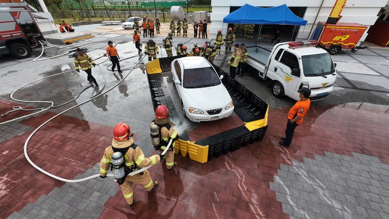 한 훈련 참가자는 “전기차 화재는 일반 차량 화재와 달리 배터리 폭발 위험이 있어 긴장감이 컸지만 반복 훈련을 통해 대응 절차를 몸에 익힘으로써 실제 상황에서도 자신감을 가질 수 있었다”라고 말했다.