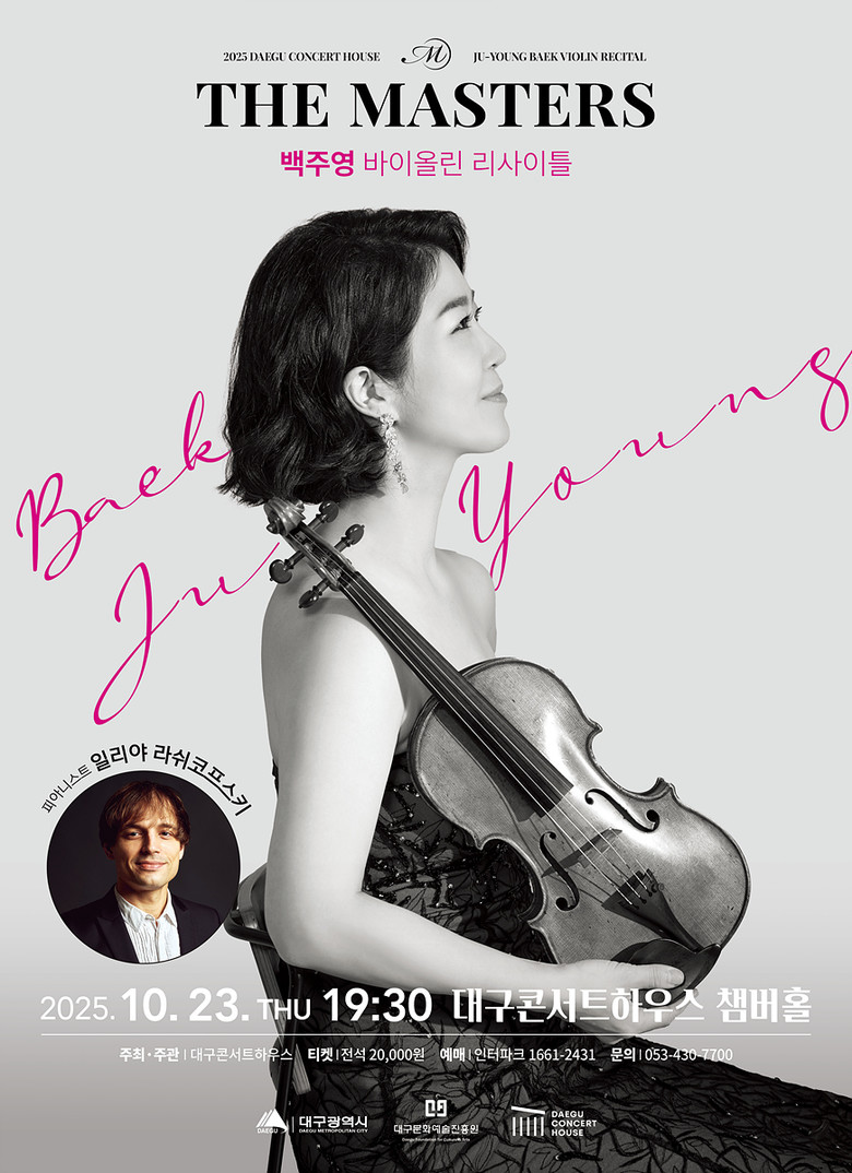 이번 공연은 클래식 전용 공연장에서 국내를 대표하는 실력 있는 연주자의 수준 높은 무대를 가까이서 만나는 ‘더 마스터즈 시리즈’의 10월 공연으로, 바이올리니스트 백주영의 연주를 선보인다.