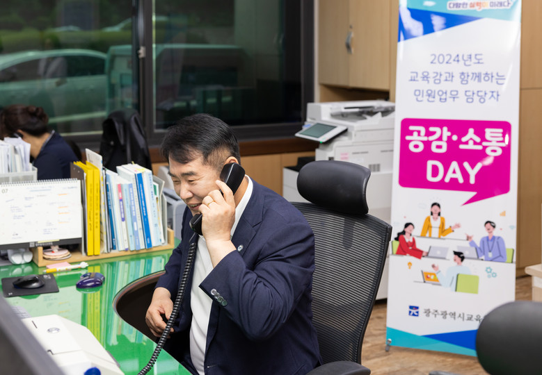 | ▲ 민원전화 응대하고 있는 이정선 교육감 |