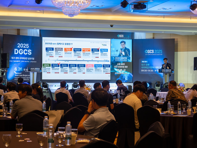 이번 ‘2025 대구·경북 사이버보안 심포지엄(2025 DGCS)’에는 ‘ABB산업보호를 위한 양자내성 암호체계로의 전환’을 주제로 국가보안기술연구소 한대완 본부장이 기조 강연을 했고, 공공부문, 민간부문, 최신 사이버보안 동향부문 3개 분야 6명의 전문가가 현장 중심의 실질적인 강연을 펼쳤다.
