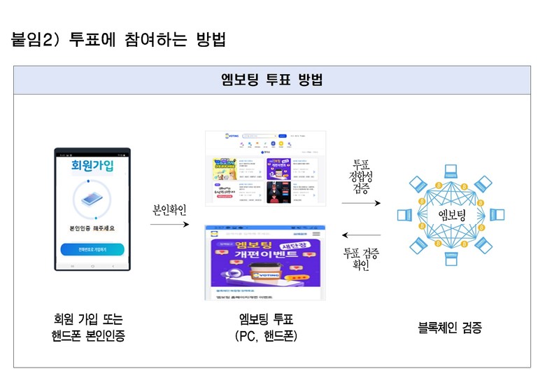 투표 참여방법도 간단하다. 엠보팅에 접속해 투표과제를 선정하고 회원가입 없이도 간단한 본인인증 과정만 거치면 된다.