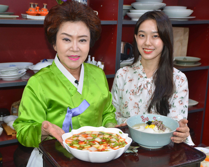 | ▲“떡국과 잘 어울리는 나박김치, 설 명절에 즐겨보세요~” 김치명인 김순자 대표가 17일 경기도 부천 한성식품 본사에서 직접 담근 나박김치를 소개하고 있다. 한성식품 측은 나박김치가 예전부터 조상들이 명절에 즐겨 먹던 음식이며, 떡국과 함께 먹는 것을 추천했다. |