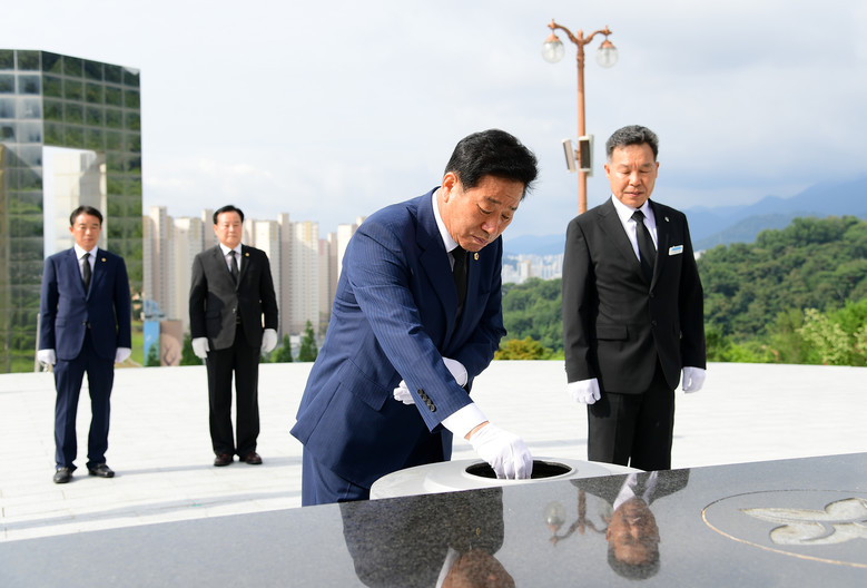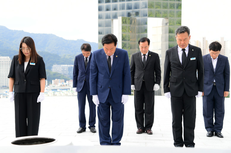 [세계타임즈=경남 최성룡 기자] 경상남도의회(의장 김진부) 의장단은 7월 6일 국립 3.15 묘지, 충혼탑 참배, 도청 및 도 교육청을 방문하는 것으로 첫 공식 일정을 시작했다.